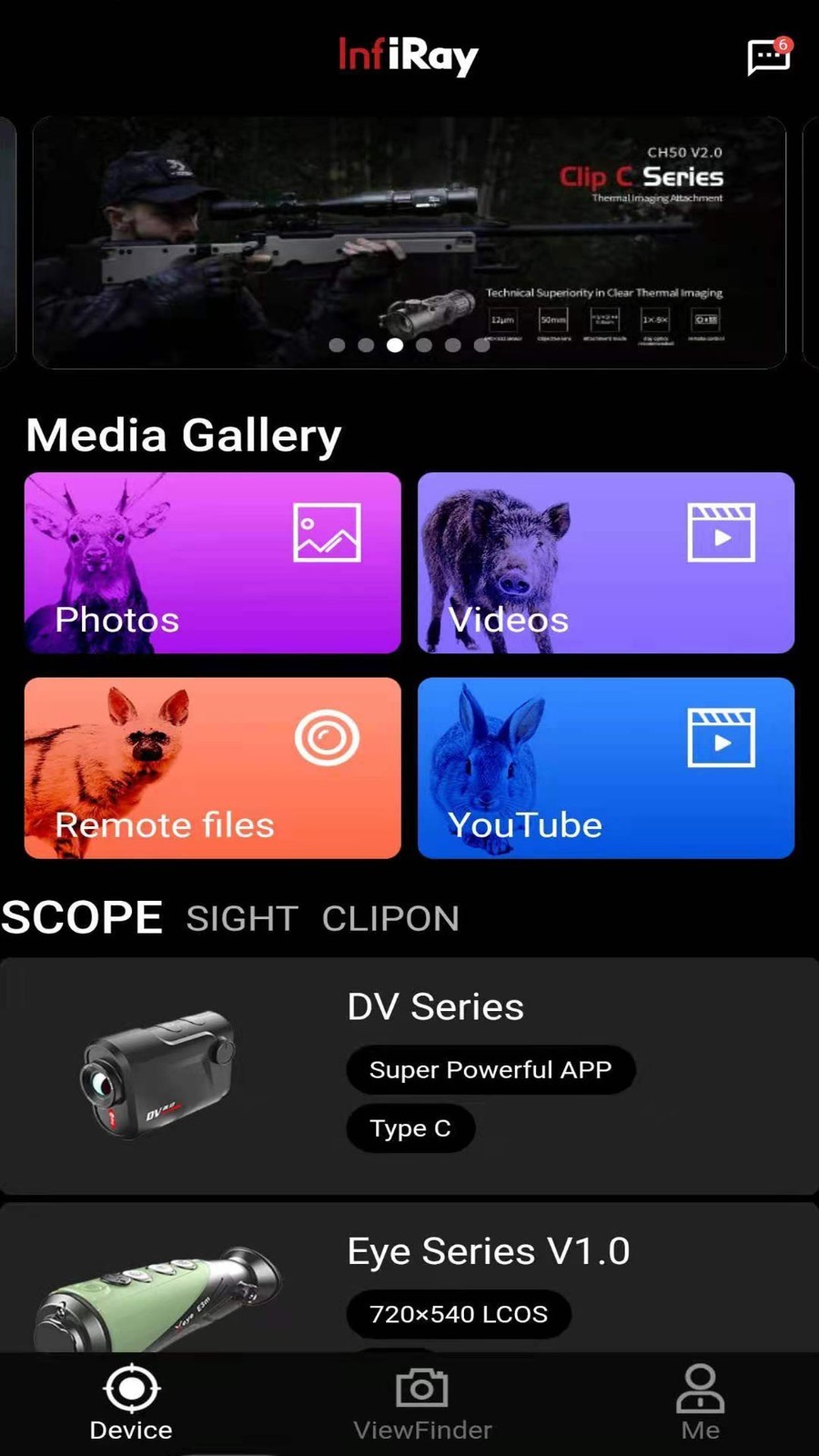 App能够连接InfiRay带WiFi的户外设备,在App里预览红外设备的实时视频,并拍照,录像,分享,访问远程设备FTP文件,更新设备固件,设置参数。