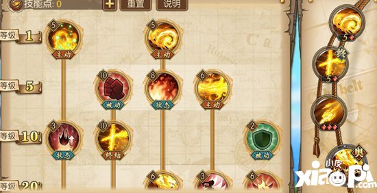 5级技能:攻击强化跟火属性伤害都要点满。这两个技能对艾斯伤害加成效果是最明显,特别是火属性伤害会直接加成到火拳上。镜火焰跟火达摩一样,也是点5点开启前置就好。