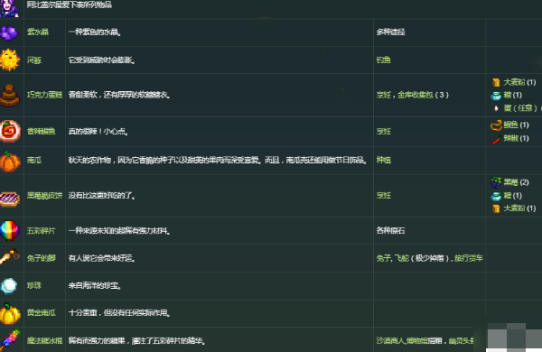 6、秋季种几波南瓜,疯狂给阿比盖尔送南瓜,好感度很快就加满了。(以下三张图是*爱、喜欢以及一般的礼物喜好)