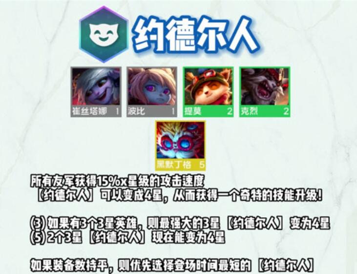 3个角色时,如果3个3星英推,则最强大的3星约德尔人变为4星
