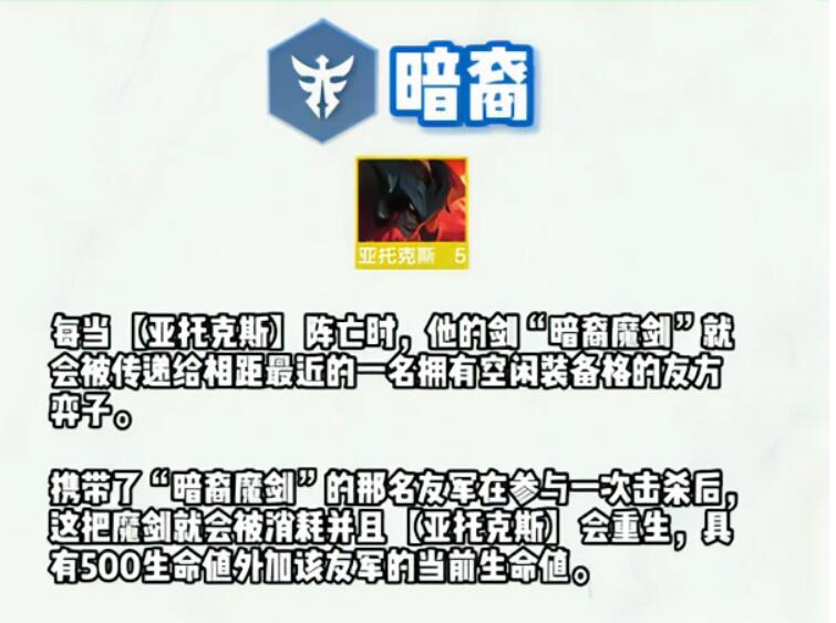 在每个备战环节开始时,你最强大的若干德玛西亚弈子会变成为精锐,从而携带一件随机的光明武器,特续到下一场战斗结束为止,并为他们自身和附近的友军们提供护甲和魔抗o