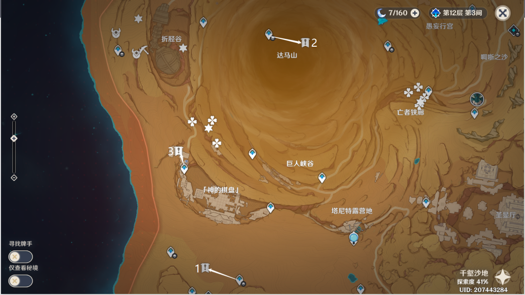 1、[流沙如泪的神殿]解密。传送神的棋盘地下锚点,往地图的北方向走。