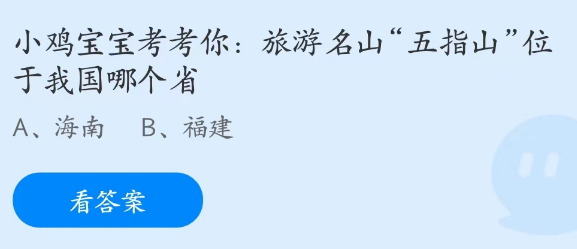 蚂蚁庄园2月10日:旅游名山五指山位于我国哪个省