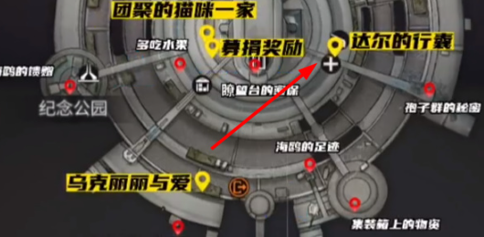 1、进入游戏后打开地图来到图中箭头所标记的位置,在这里和达尔互动。