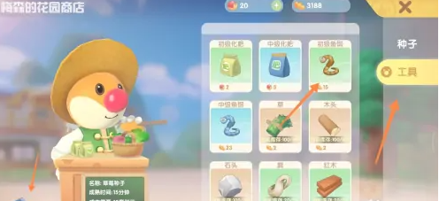 3、我们在梅森种子商店中点击右边的工具按钮,就可以看到鱼饵,我们点击鱼饵。