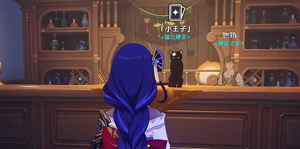 1、小王子(黑猫):位于猫尾酒馆的吧台上,在这里不仅可以进入卡牌商店还能查看牌手等级。