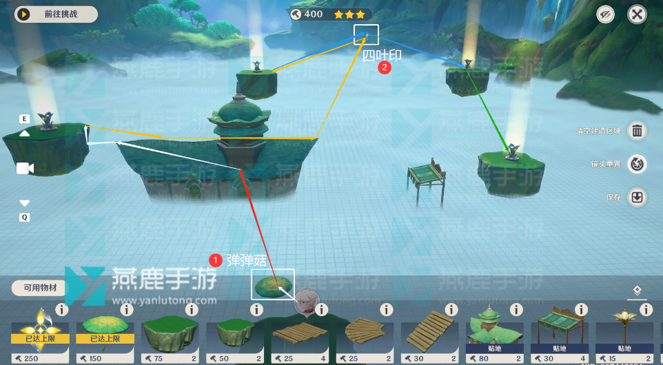 2、放置2个弹弹菇,再放1个四叶印。下图为侧视图。