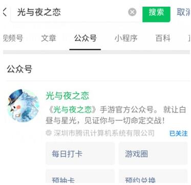 1、首先打开微信,接着在搜索框中输入光与夜之恋查询公众号。