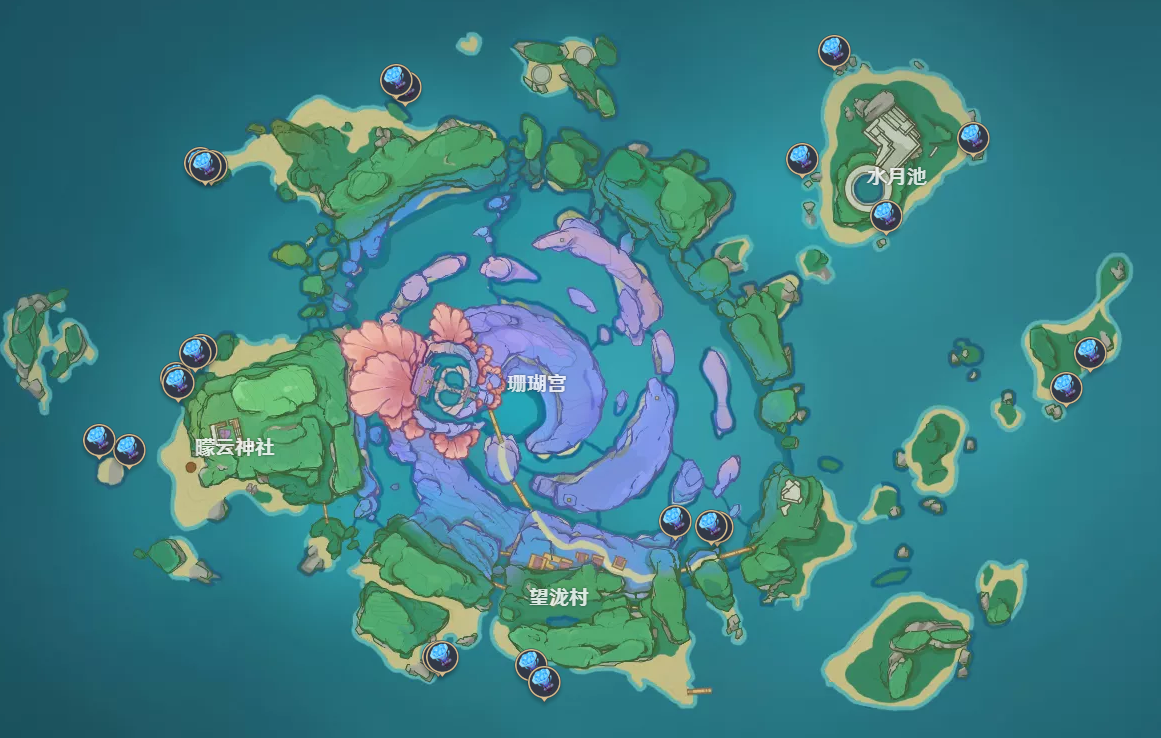 下图的标记都是海灵芝,稻妻野外能够找到。