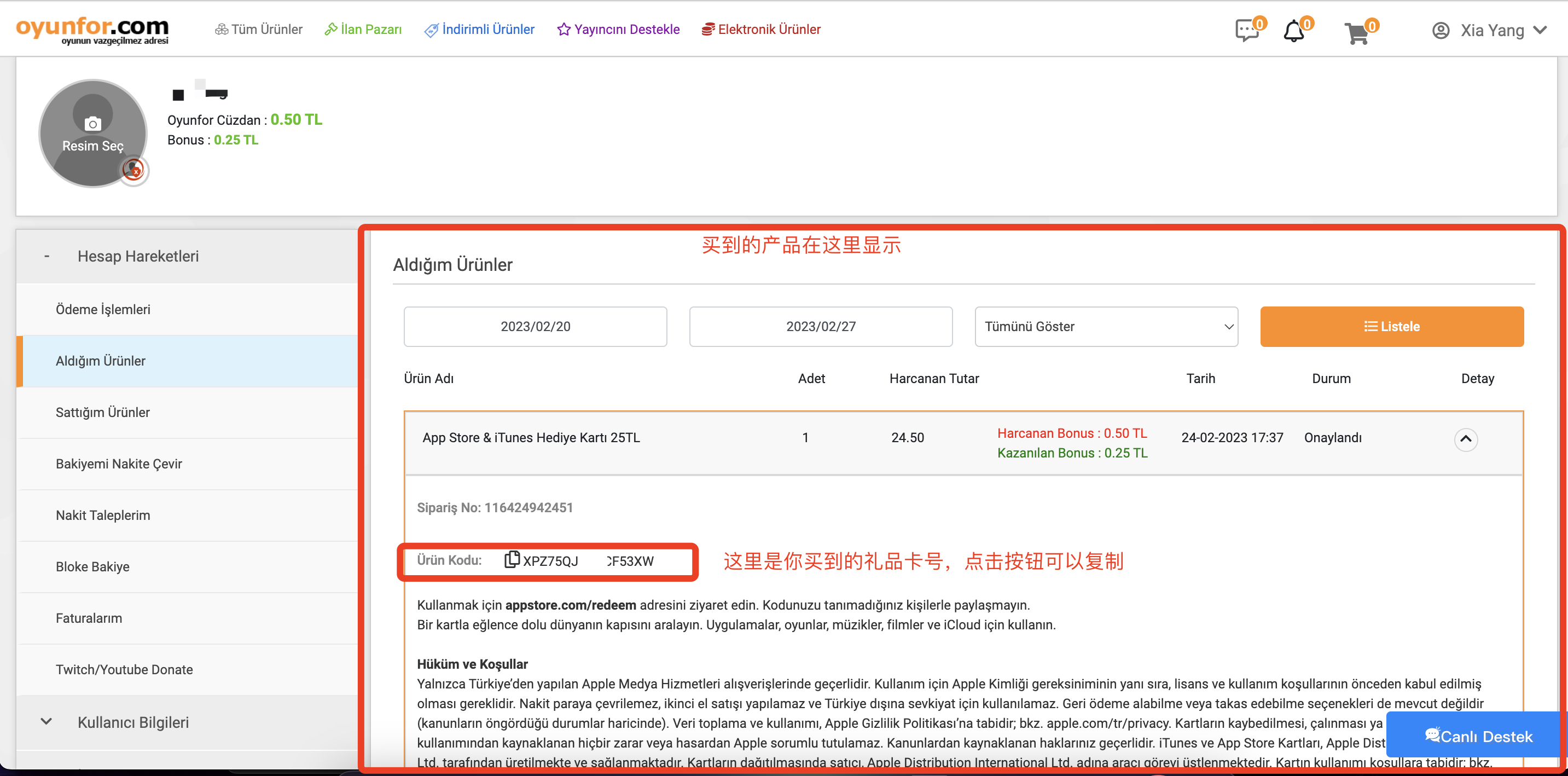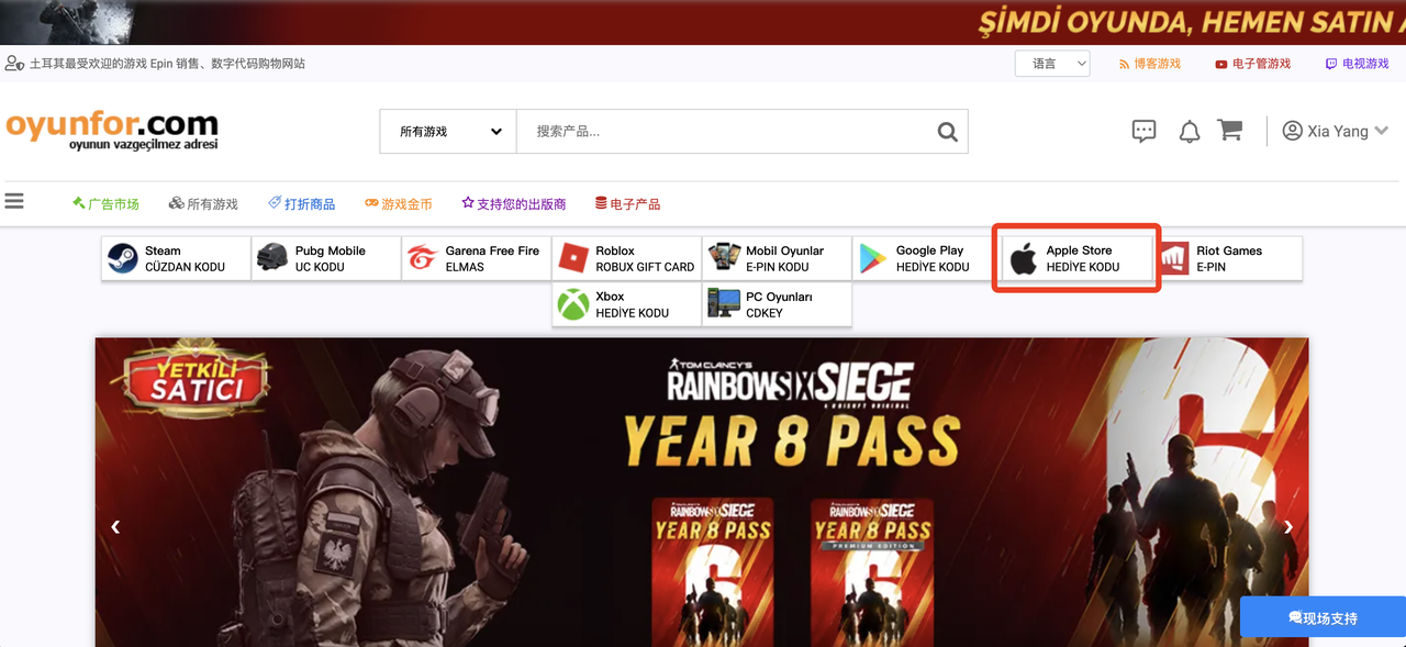 使用oyunfor购买土耳其苹果商店礼品卡。好处是支持银联,缺点是偶尔抽风不稳定