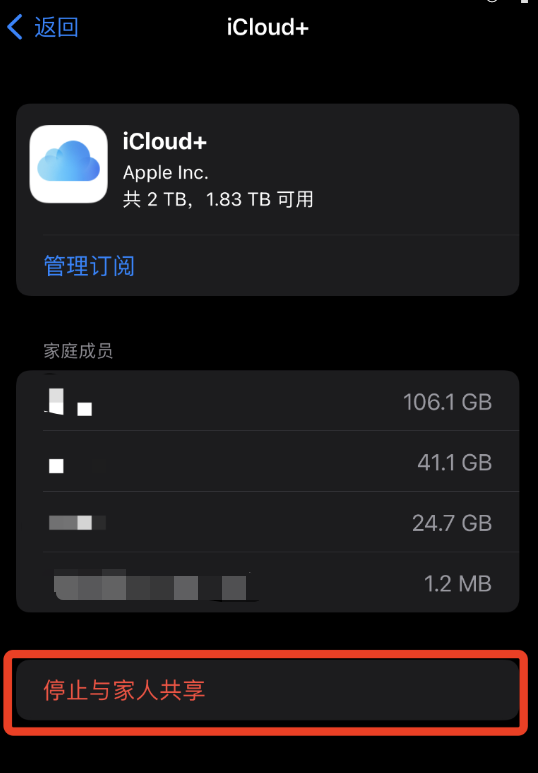 如果之前家庭已经开通了国区的iCloud,且全部成员在共享使用,那你需要关闭原来购买的iCloud服务;