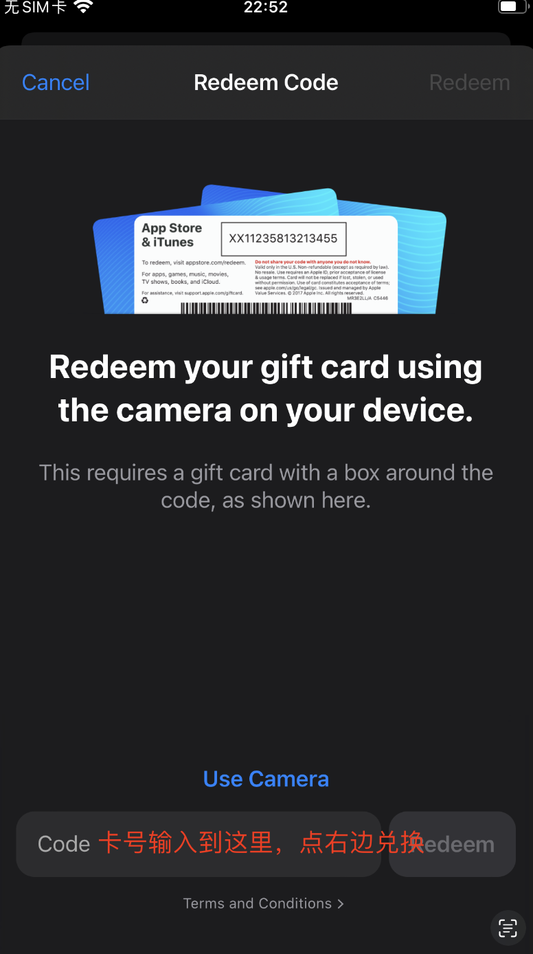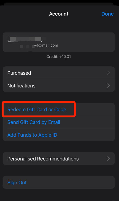 13、在土区苹果账号中兑换礼品码。在登录了土区苹果账号苹果设备中进入App Store,会进入土耳其语的苹果应用商店中,点击【右上角头像】,再点击【兑换礼品码】,按下图操作,只要成功了,礼品卡的钱就充值到你的土耳其AppleID中了;