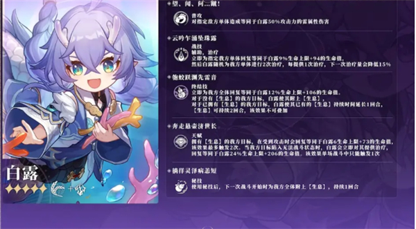 总体来说,白露是一位强力辅助群奶,适合新手获取后进行培养。