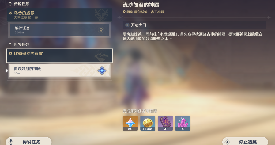 1、接取任务[流沙如泪的神殿]。