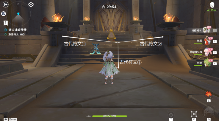 4、进入挑战后,可以前往不同的方向激活古代符文,一共有3个。