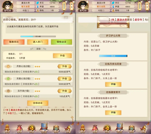 里面有两个功能是我们现在立刻能用到关于道童的,炼丹房,道童居