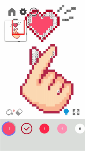 三、像素涂:采用像素风格,每个像素都有对应的颜色和数字提示,游戏中还提供了颜料桶等工具。