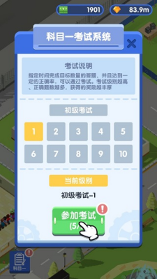 3、当然啦,装修离不开钱,想要完成更豪华的装修,前期是玩家需要足够的资金,现在多增加点桌椅可以供更多的学员上课,每位学员都会支付一定的学费。下面是关于考试系统的介绍科目一考试系统考试说明:指定时间完成目标数量的答题,并且达到一定的正确率,可以通过考试。考试级别越高、正确题数越多,获得奖励越丰厚。