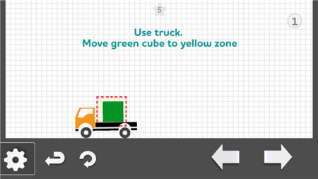 第1关:初始关卡较为简单,只需控制小车向左移动,使绿色矩形顺利进入黄色虚线框内即可通关。