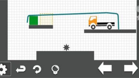 第2关:需在空中绘制辅助线连接断层,形成通路。按图示轨迹画好后,将卡车缓慢左移至目标区域。