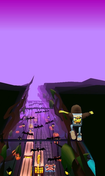 游戏操作全部用触摸手势完成,在屏幕上往上划是跳跃,往下划是翻滚,左右划是变换轨道。游戏中最主要的障碍物就是铁轨上的一截截列车车厢,以及那些横跨在铁轨上高高低低的挡板,利用少年敏捷的身手在这中间穿梭,流畅的动作和精细的画面都很能给人满足感。铁轨中分布着一颗颗金币,你可以把这些金币当做前进道路上的指引,朝着金币多的地方前进。