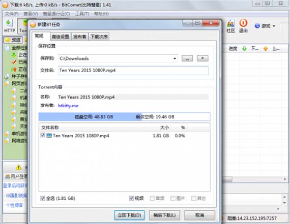 比特彗星绿色版是一款体积小、功能强大的下载软件,比特彗星绿色版具有多项领先的bt下载技术,下载速度快连接快,支持多任务下载及断点续传功能,独有的长效种子功能还能显著提高BT种子的下载速度,延长种子寿命,可以说是种子下载器的不二之选。用户之间可以互相共享任务列表,浏览其他人的共享任务,再也不用担心找不到资源的问题。